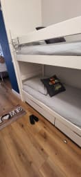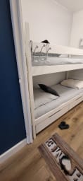 🛌1 bedroom (double bed) and a cabin (bunk beds) Peaceful nights: Quality bedding for a good night's sleep.