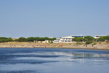 Transport : La gare du Grau du Roi se trouve à 2km . La ville est desservie par un service de bus prêt de la Résidence. La Gare TGV la plus proche est Montpellier Sud de France. L’aéroport le plus proche est "Montpellier Méditerranée".