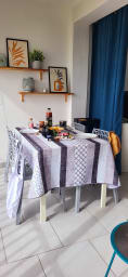 Côté cuisine : ouverte sur le séjour, entièrement équipée (2 Plaques Induction, micro-ondes, frigidaire, lave vaisselle, lave-linge , cafetière Senséo, grille pain et bouilloire) avec une table rectangulaire pour 4 personnes qui vous permettra d'accueillir vos repas et convives.