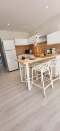 Côté cuisine : ouverte sur le séjour, entièrement équipée (2 feux induction, micro-ondes, frigo, lave vaisselle, cafetière Nespresso, grille pain et bouilloire) avec une table pour 4 personnes qui vous permettra d'accueillir vos repas et convives.