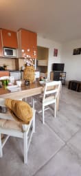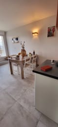 Côté cuisine : ouverte sur le séjour, entièrement équipée (2 Plaques Induction, micro-ondes, frigidaire, lave vaisselle, * cafétière Filtre * et * cafetière Senséo ** , grille pain et bouilloire) avec une table pour 4 personnes qui vous permettra d'accueillir vos repas et convives.