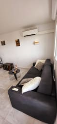 Logement : Ce petit cocon à 100 m de la Plage, de type Studio Cabine climatisé pour 4 personnes (2 adultes et 2 enfants ou jeunes adolescents), très confortable, est entièrement refait à neuf. (Climatisation réversible, cuisine équipée, salle de douche)